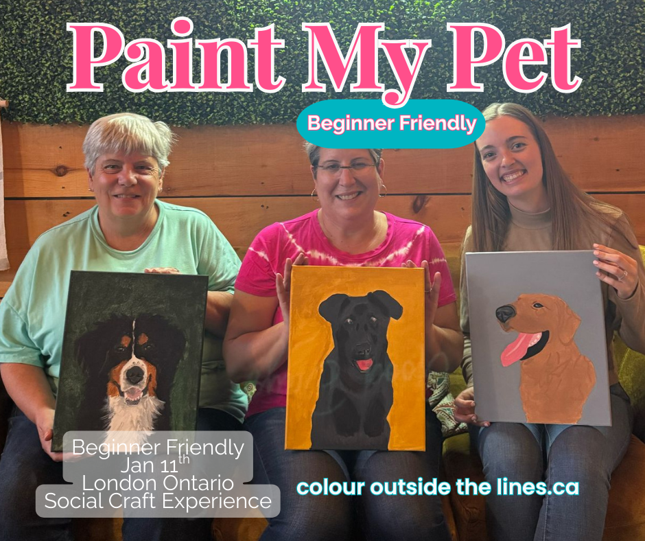 Jan 11th, 6pm Paint my Pet workshop PetValu 109 Fanshawe Park Rd E, London, ON N5X 3W1 Email a photo of your pet to colouroutsidethelines.ca@gmail.com. 55$ SPACE IS LIMITED includes a treat for your pet!